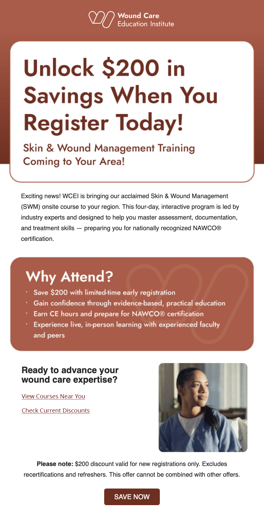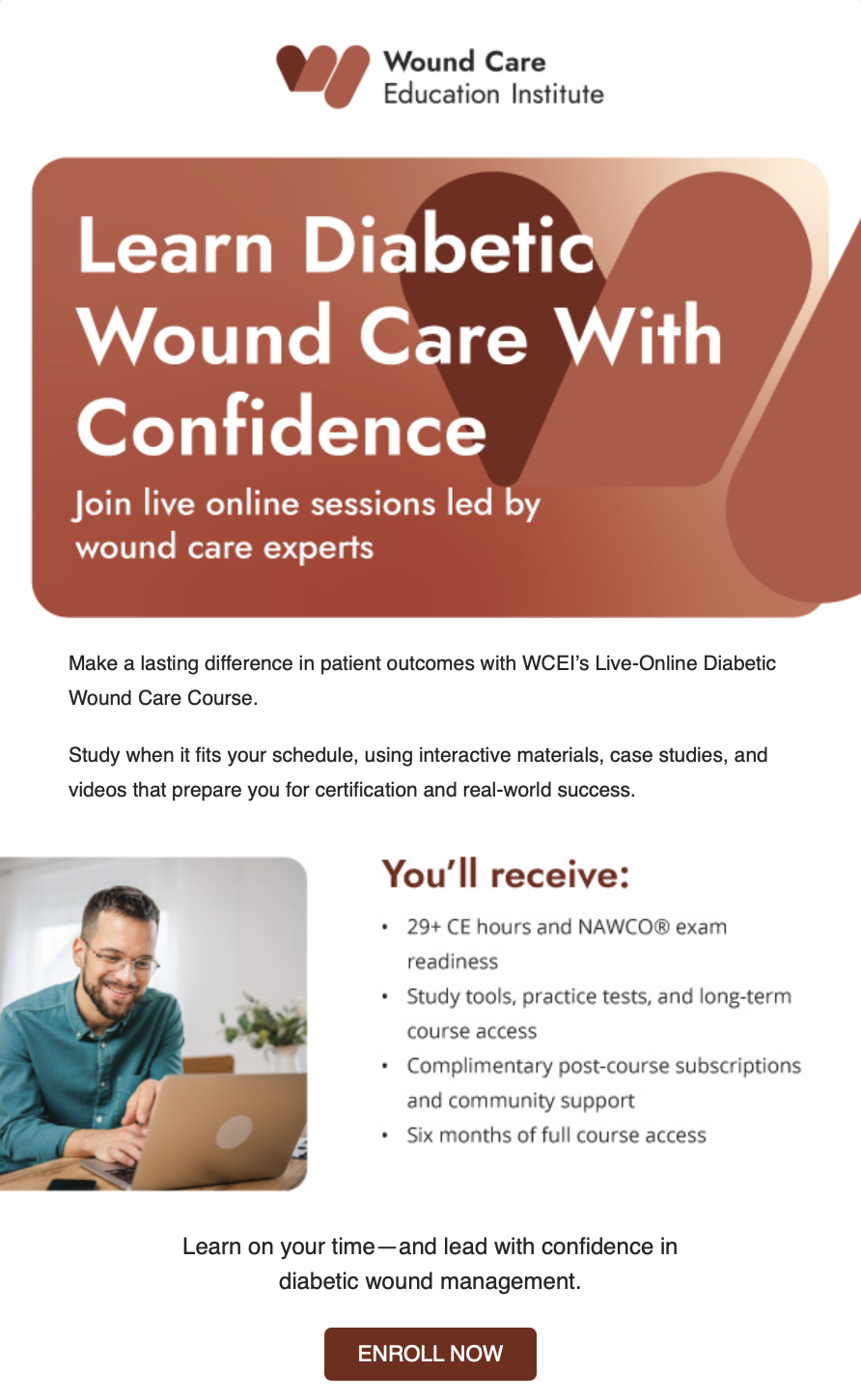 Led a full redesign of the Wound Care Education Institute’s email templates, improving structure, branding consistency, and readability across campaigns.