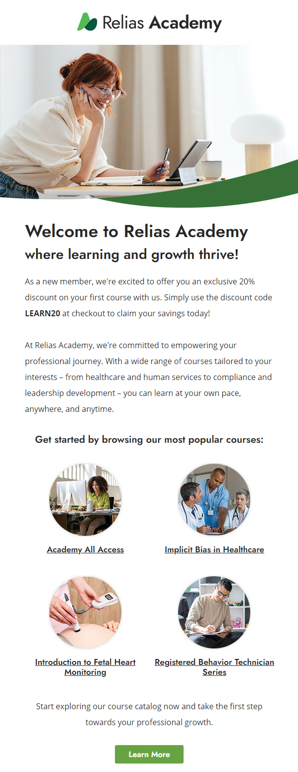 Redesigned Relias Academy emails to balance clear readability with delivering essential information, improving subscriber engagement and comprehension.